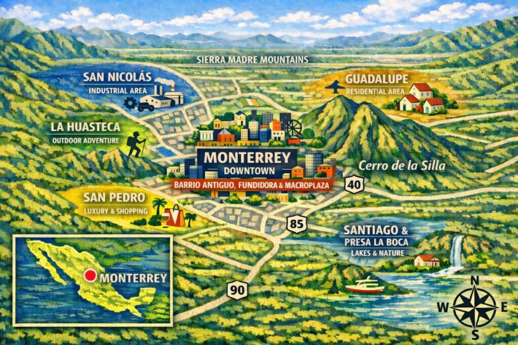 モンテレイ市という市もありますが、隣接する複数の市をまとめて「モンテレイ」と呼ばれています。